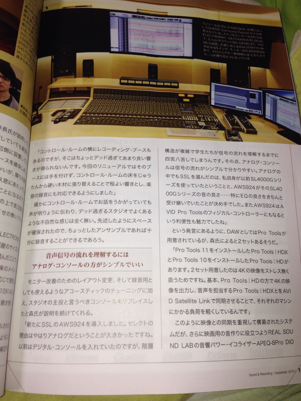 2015-08-05 サンレコ 日常 ミク特集だったせいもあって、サンレコ買ってみた。自分で金払ってサンレコ買うのっておそらく30年ぶりくらいw 内容はまあ予想通りのものではあったんだけど、それより名古屋学芸大学のスタジオが記事になっていた。うちもそうだけど、いよいよ大学の専門学校化が進み始めてる感じだな。 クリック拡大 DM2000が理解できないならAWS924でも一緒のような気がするけど…。 まあ学科にちゃんと専任が複数名がいるだけうちよりマシだなw .